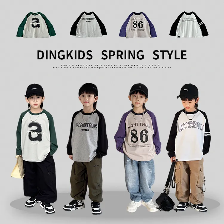 【黑紫现】童装圆领长袖t恤新款韩版潮服男童男孩打底衫秋款24042