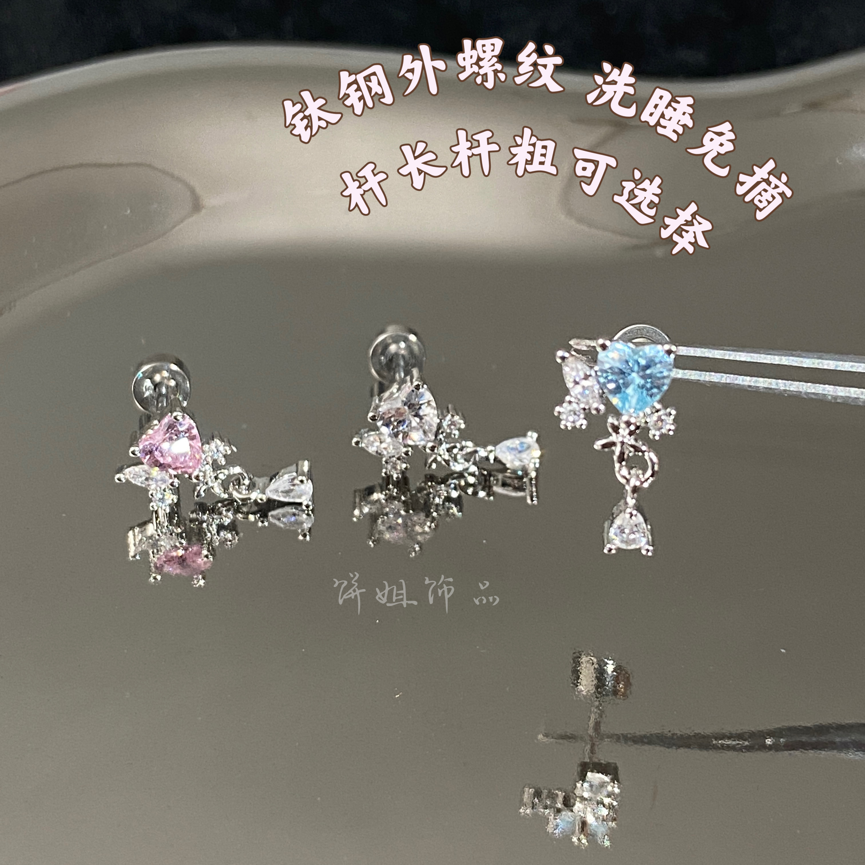 钛钢耳饰 Y440 【桃心气泡】耳骨钉钛钢外螺纹免摘耳钉灵动flat